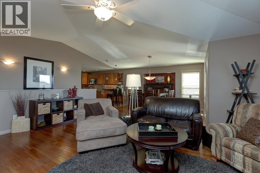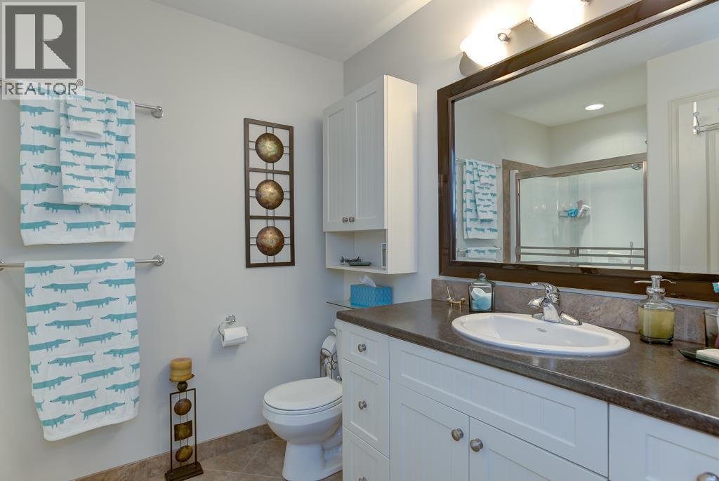This beautifully maintained townhome in the sought-after Dilworth Mountain area offers a spacious upper level featuring an open-concept living, dining, and kitchen area with a vaulted ceiling. Step out onto the sundeck from the dining area to enjoy stunning mountain views and a glimpse of the lake. The upper level also includes a primary bedroom with a walk-in closet and a 3-piece ensuite, a second bedroom, a full bath, and a laundry area.?The kitchen offers a walk-in pantry and provides access to a stunning private backyard and patio. The ground level has a large double garage, family room, guest bedroom, full bath, and plenty of storage space and workshop. Retractable solar blind on the front deck. The sellers have priced the home competitively for the market with quick possession available. Pet restriction:2 dogs or 1 dog 1 cat, no vicious breed (id:4069)